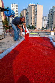 September in Adana always brings three things: slight relief from the soul-crushing heat and humidity, smoke wafting into the city from the farmers burning the surrounding agricultural fields, and, lastly, fresh salça. Salça (pronounced sahl-cha) is a red pepper paste that has been made in Turkey for generations, and Adana is renowned for it. All major roadways going in and out of the city are lined with little wooden shacks that sell this concoction. This year my family was invited to participate in the salça-making tradition.